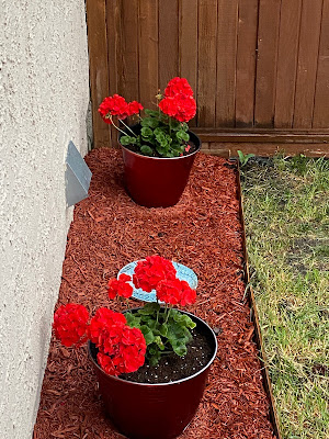 Ron trimmed and cut the grass and I dove into the gardens. I weeded and weeded. I trimmed, pruned and cut things out and then we went shopping. Walking through a nice nursery is always a little exciting for me. I don’t have a green thumb like my dad and sisters but I like to try. We collected soil, flowers, seed, plants and bark and then spent the afternoon making things look nice. The finished work was worth the effort of working in the hot sun.