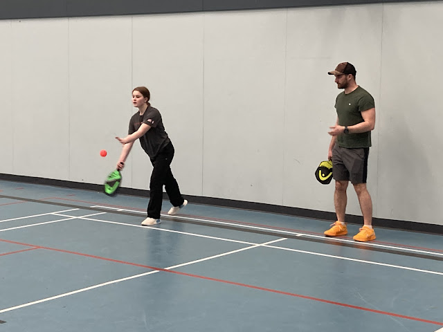 Stephen, Kylie and Sarah went to play pickle ball in the evening. The night before Sarah spent about an hour working out with Kylie and Stephen. She is getting in her gym classes now!